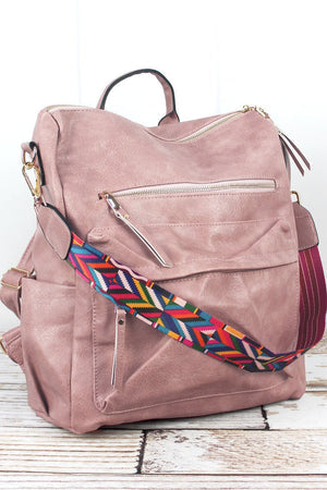 BLUSH PINK FAUX LEATHER BACKPACK TOTE