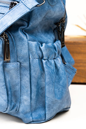 BLUE FAUX LEATHER BACKPACK TOTE